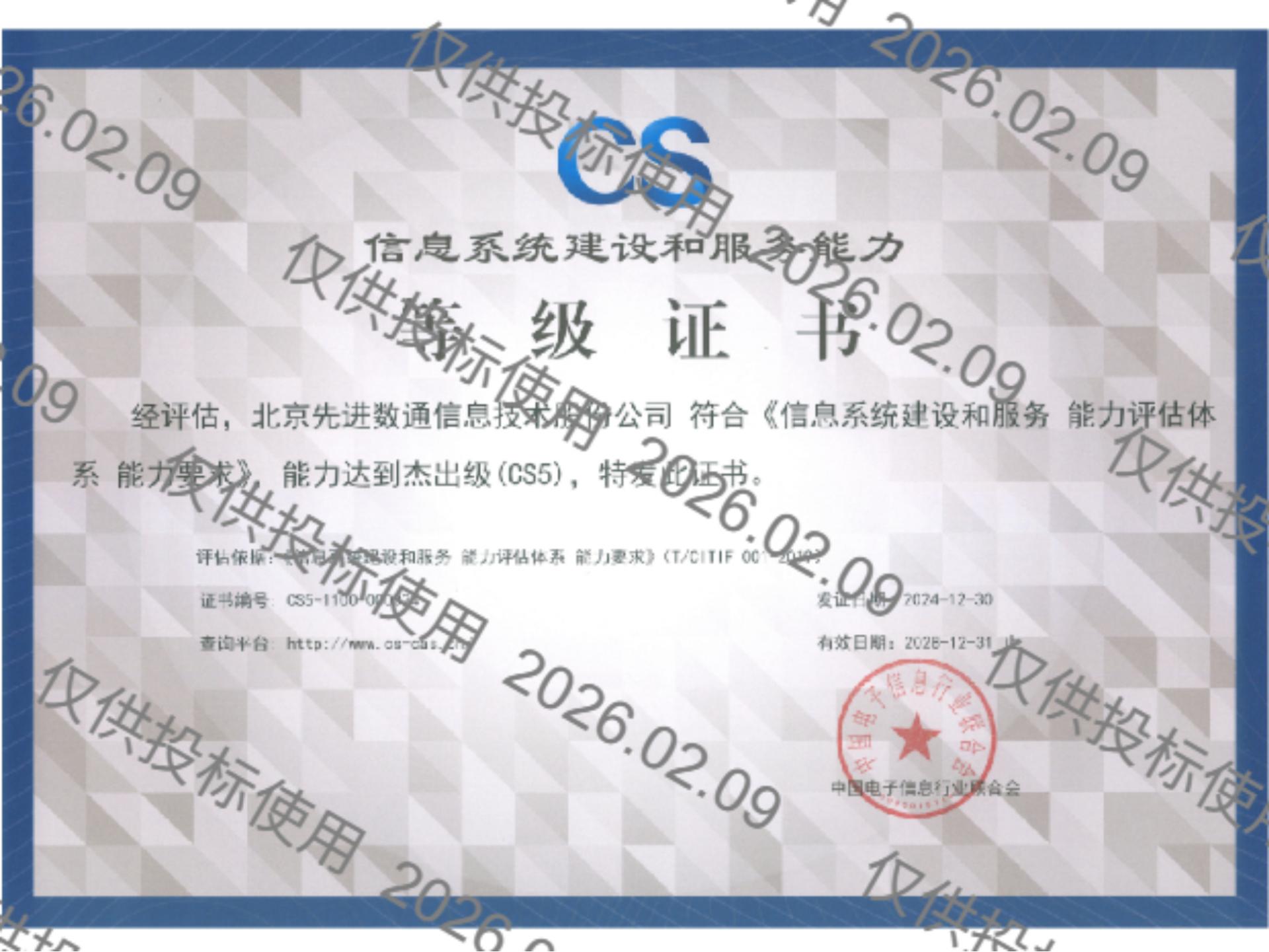 • 信息系统建设和服务能力评估杰出级(CS5)