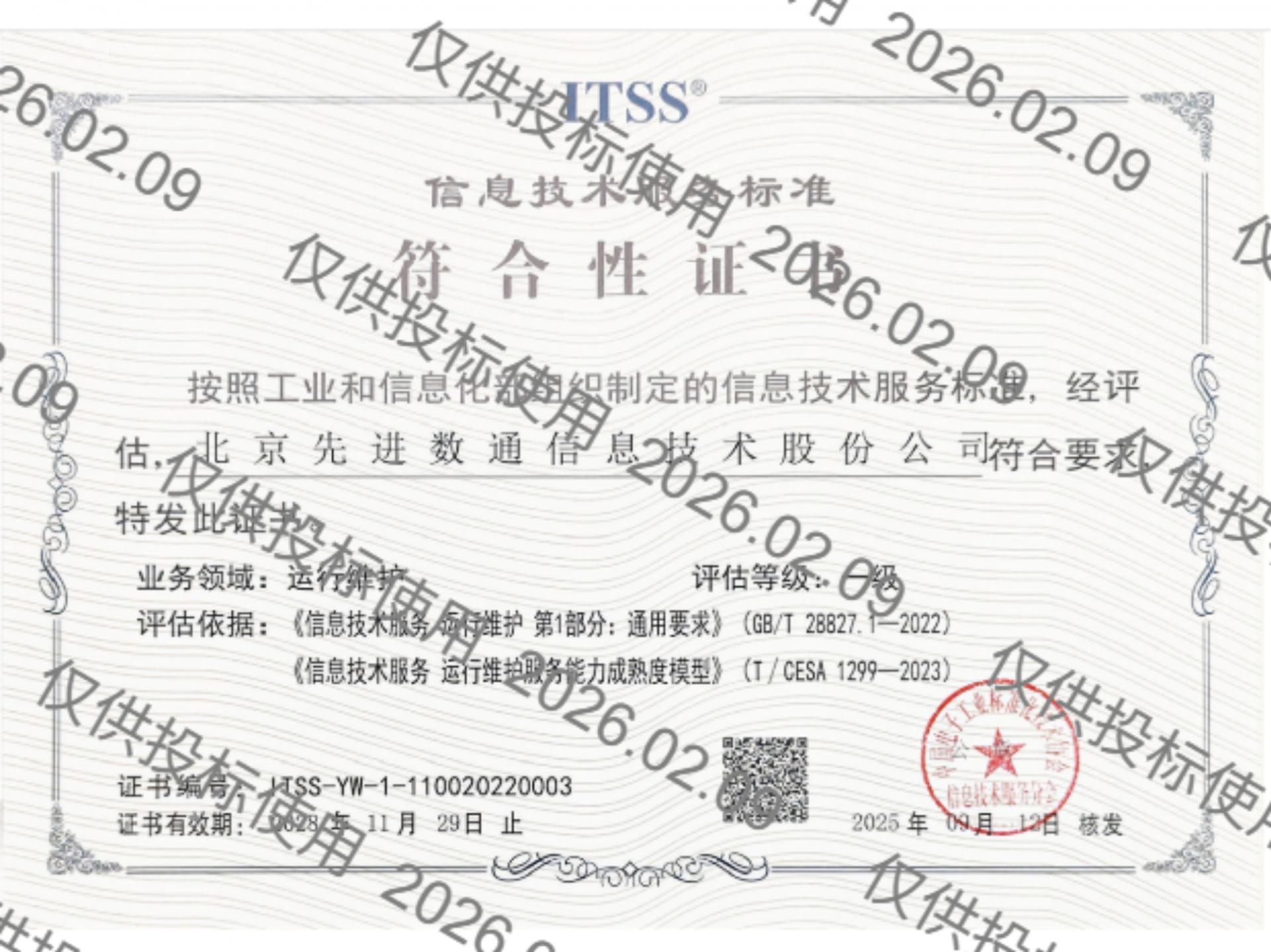 • ITSS符合性证书成熟度(一级)